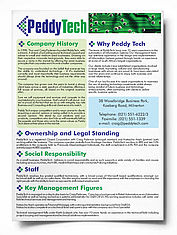 This project involved designing new brochures and a Corporate ID for PeddyTech. For this, we used Photoshop for photo manipulation and Illustrator to produce print-ready PDFs and CorelDraw for inital spreads.