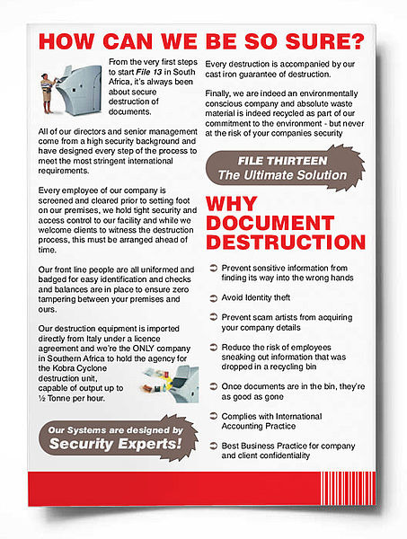 This project involved designing new brochures and a Corporate ID for File13. For this, we used Photoshop for photo manipulation and Illustrator to produce print-ready PDFs. Corel Draw was used for the inital layouts and spreads.